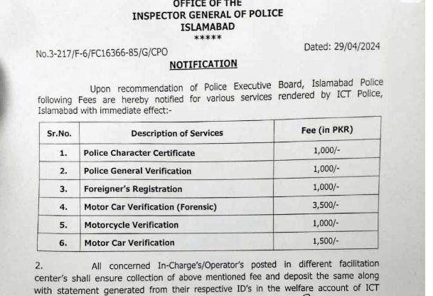 اسلام آباد پولیس کی جانب سے تمام سروسز پر فیسوں کا اطلاق کردیا گیا۔ترجمان اسلام آباد پولیس کے مطابق نئے آئی جی اسلام آباد علی ناصر رضوی نے شہریوں پر فیسوں کا اطلاق کیا۔ترجمان نے بتایا کہ پولیس کریکٹر سرٹیفکیٹ مزید پڑھیں